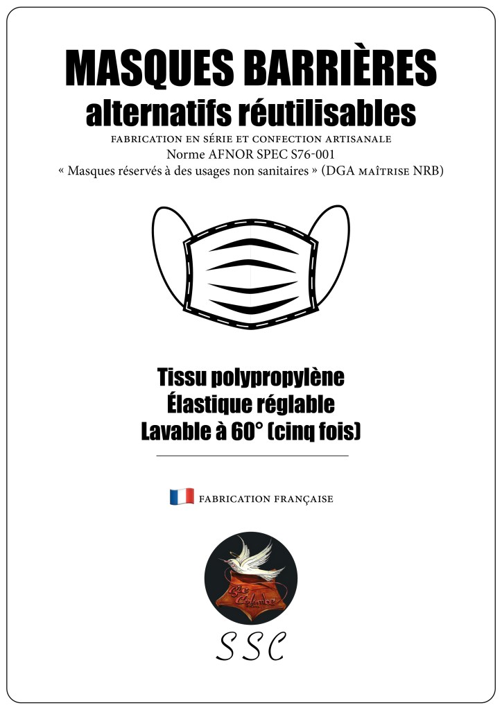 La sellerie Sainte-Colombe réalise exceptionnellement des masques alternatifs en tissu polypropylène durant la crise sanitaire du civid-19.