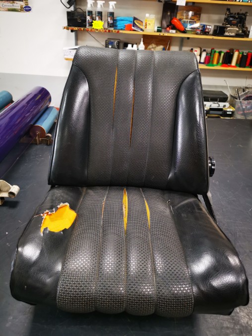 Restauration d’une sellerie automobile de marque Peugeot 304.
