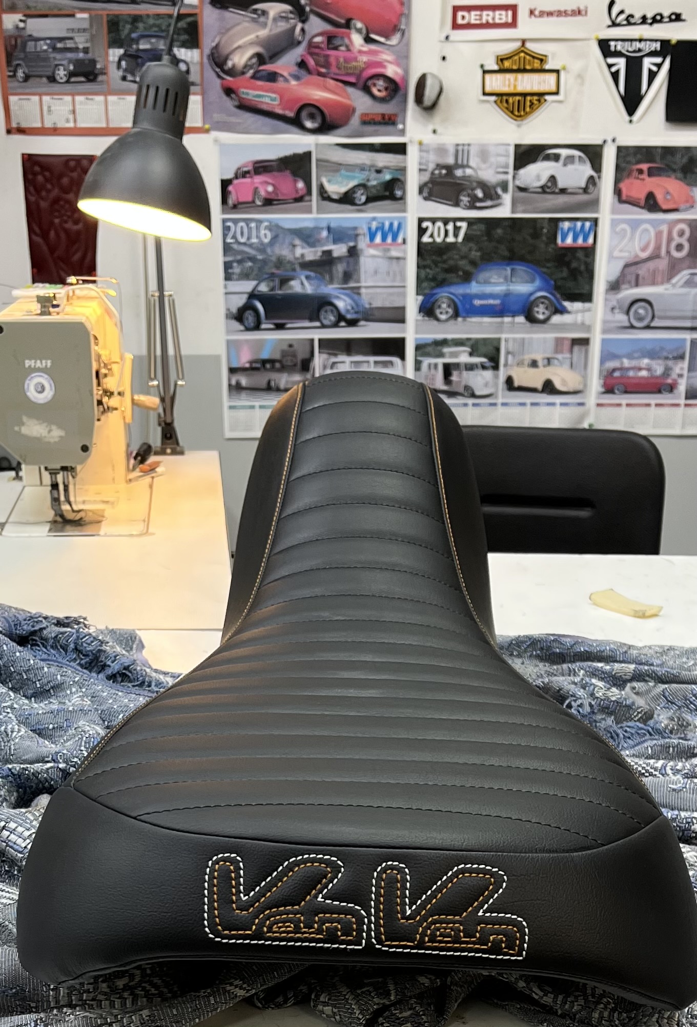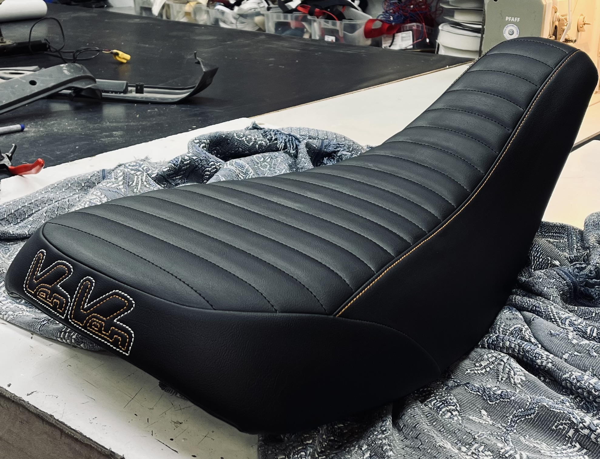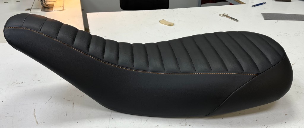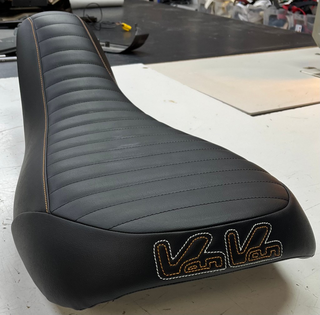 La Sellerie Sainte Colombe a restauré une selle de Suzuki Van Van.