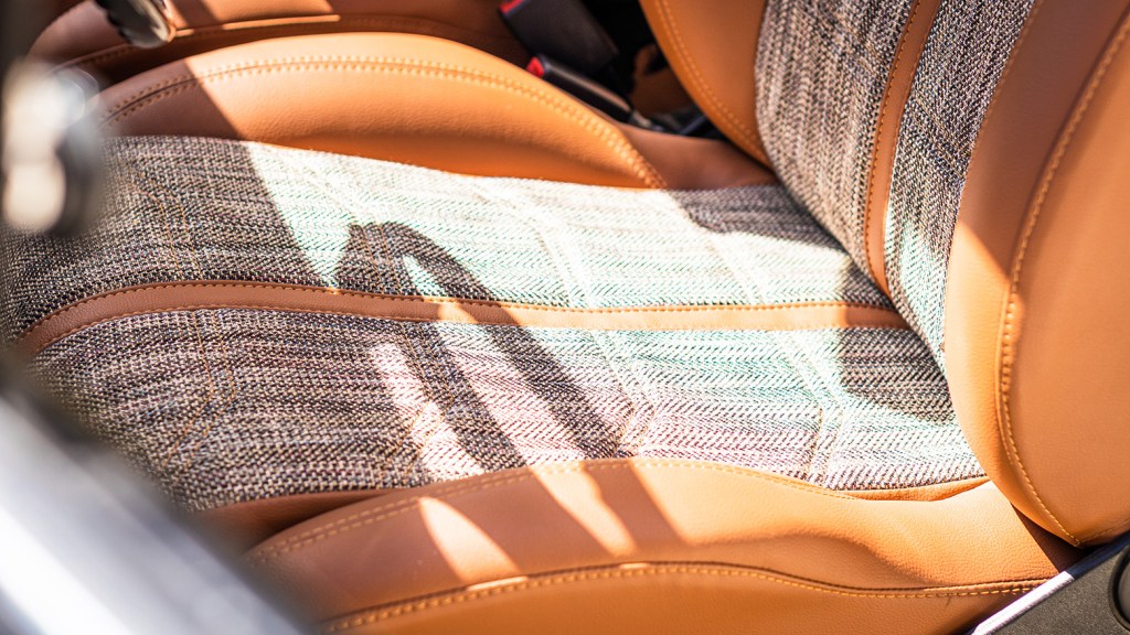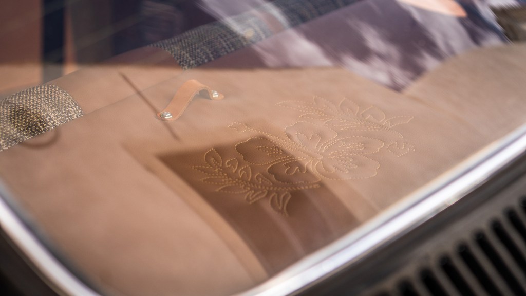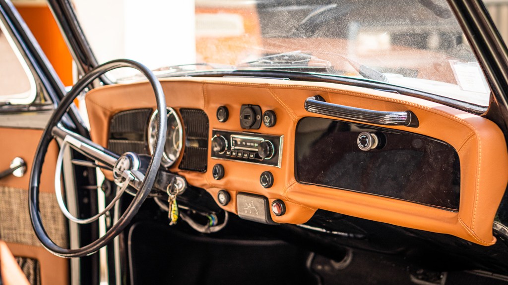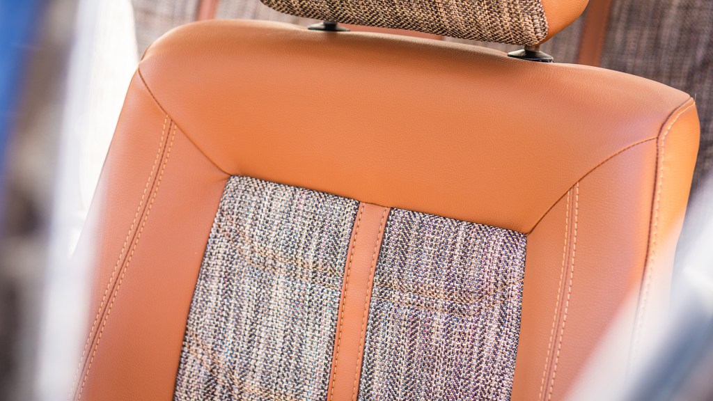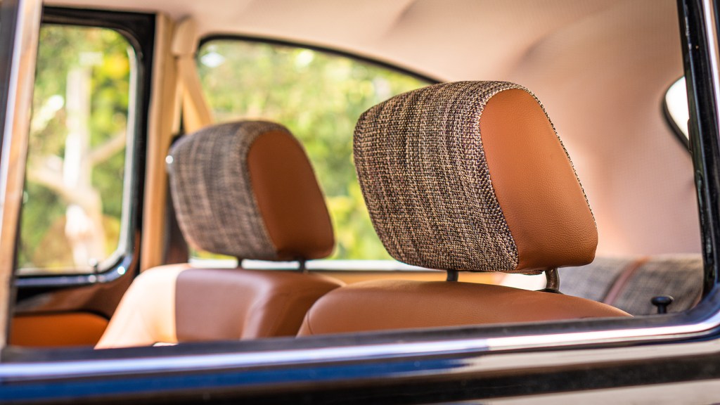 Rénovation complète de la sellerie sur cette magnifique Coccinelle 1300 de 1968 : panneaux de portes, tableau de bord, sièges avant, banquette arrière, et plage arrière avec un beau motif (photos Tim Jourda).