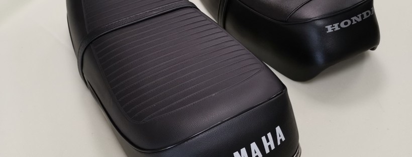 La Sellerie Sainte Colombe a restauré deux selleries moto complètes, Yamaha et Honda, à l'origine avec une mise en forme de la mousse.