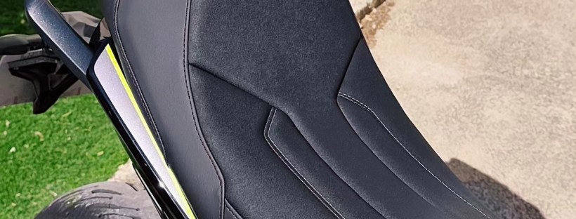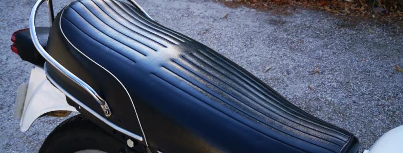 La Sellerie Sainte Colombe a restauré une selle de Suzuki Van Van.